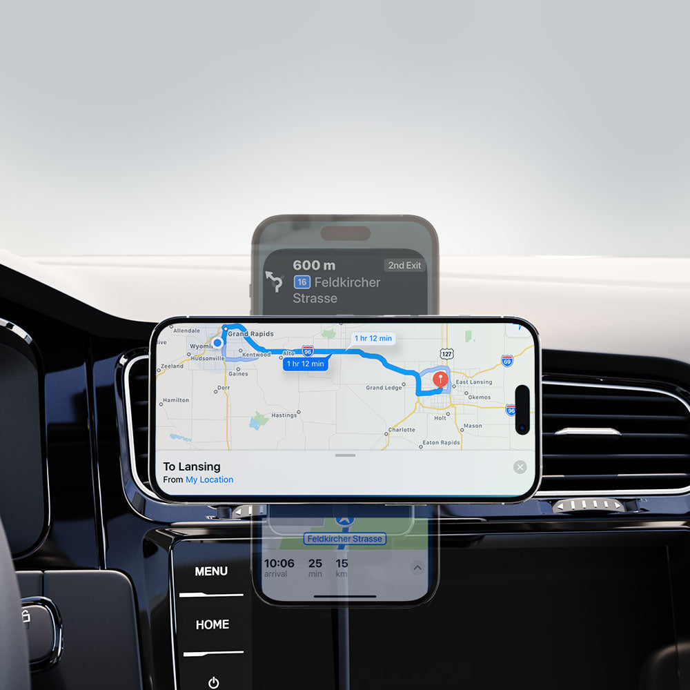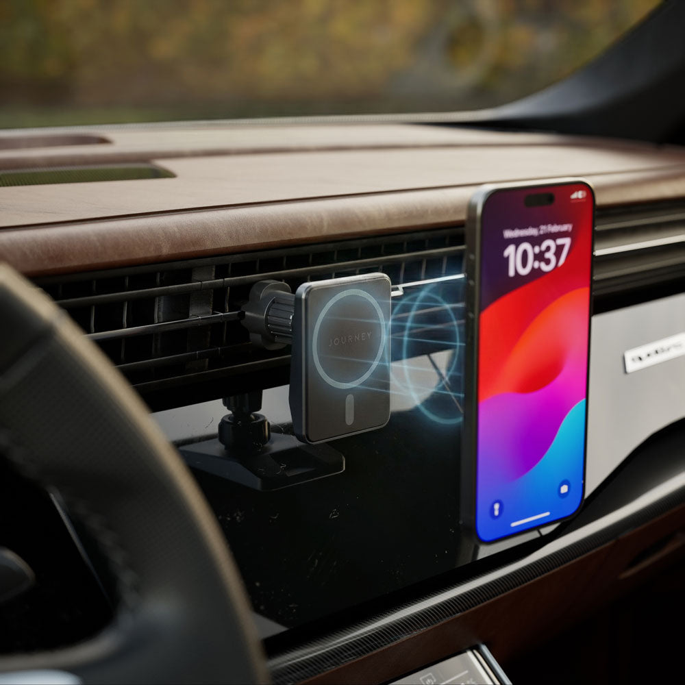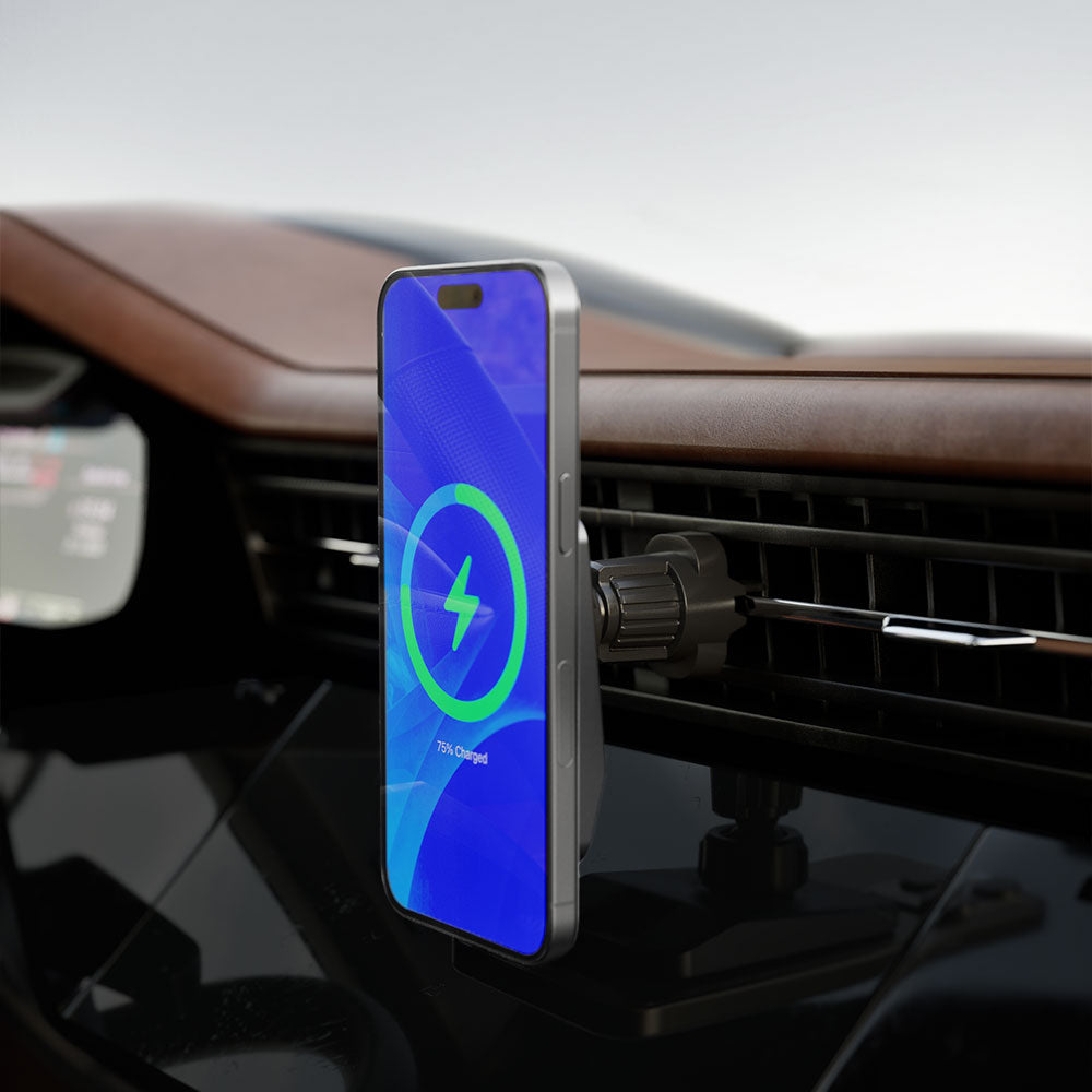 The EXPRESS Wireless Car Mount Charger with MagSafe is a safe and convenient way to keep your phone charged while driving. It features magnetic mounting that works with MagSafe-compatible iPhones, as well as other smartphones. The charger includes both a vent mount and a dash mount, so you can find the perfect spot for your phone. The charger delivers fast charging speeds of up to 15W, so you can keep your phone topped up even on long drives.