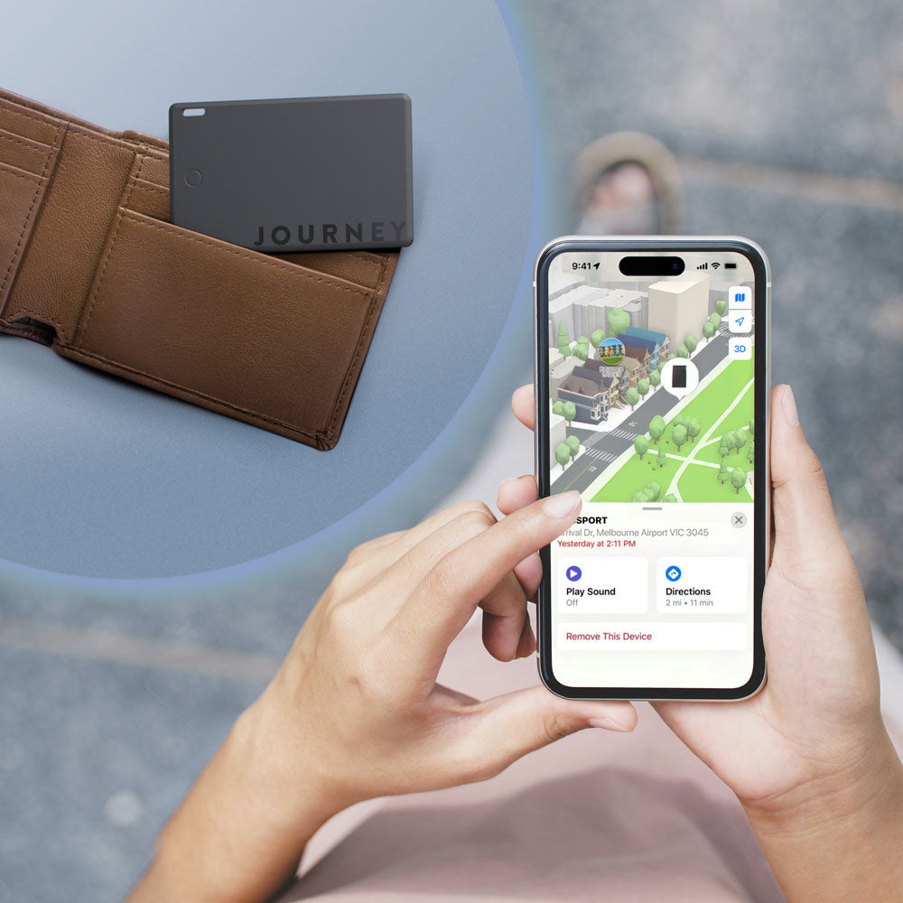 A: You may prefer to permanently store multiple LOC8 cards within your belongings. Or you may prefer to store a single LOC8 card between belongings, such as wallets and bags, as you use them. JOURNEY’s cards are extremely lightweight and pocket-friendly.