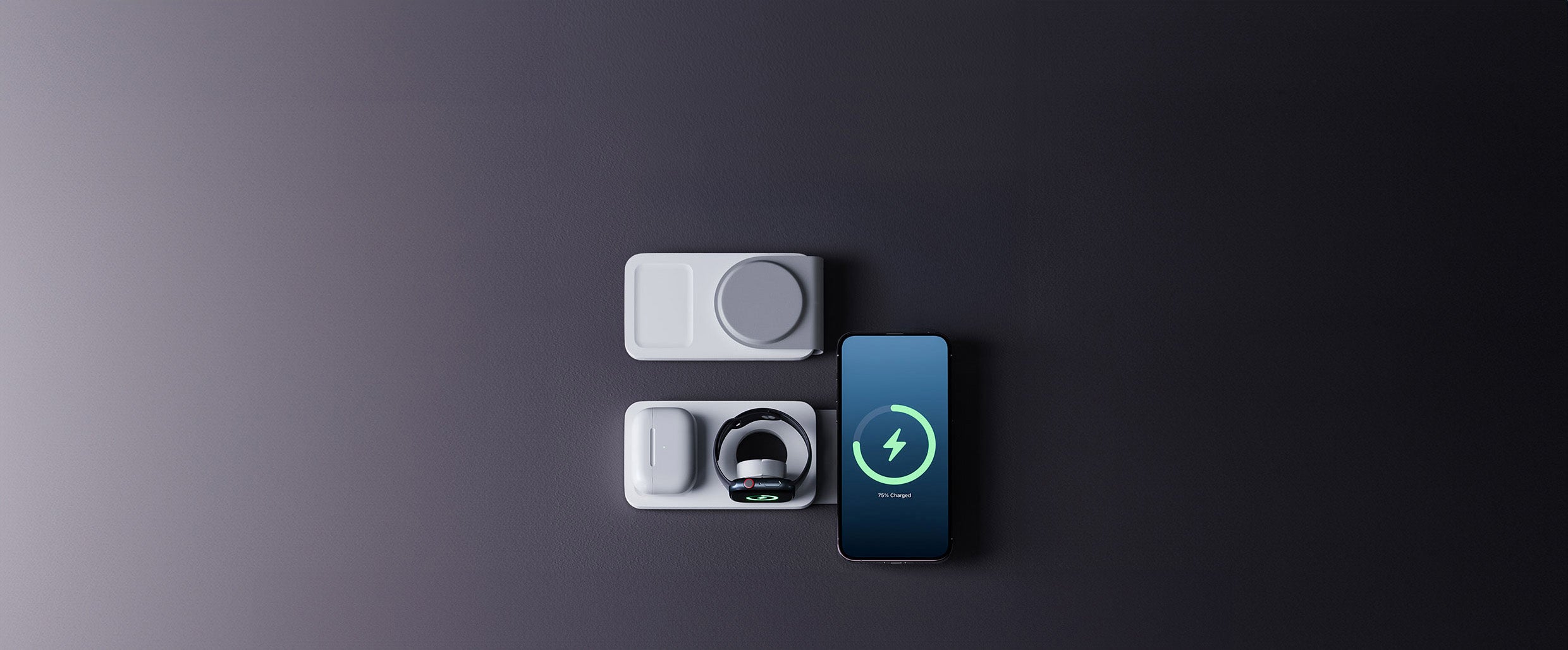 Introducing SWIV, the ultimate convenience in charging: our 3-in-1 wireless charging station. This sleek, foldable device effortlessly powers up your iPhone, Apple Watch, and AirPods simultaneously. Crafted with premium materials and Apple-certified technology, it guarantees safe, efficient, and stylish charging at home and on the go.