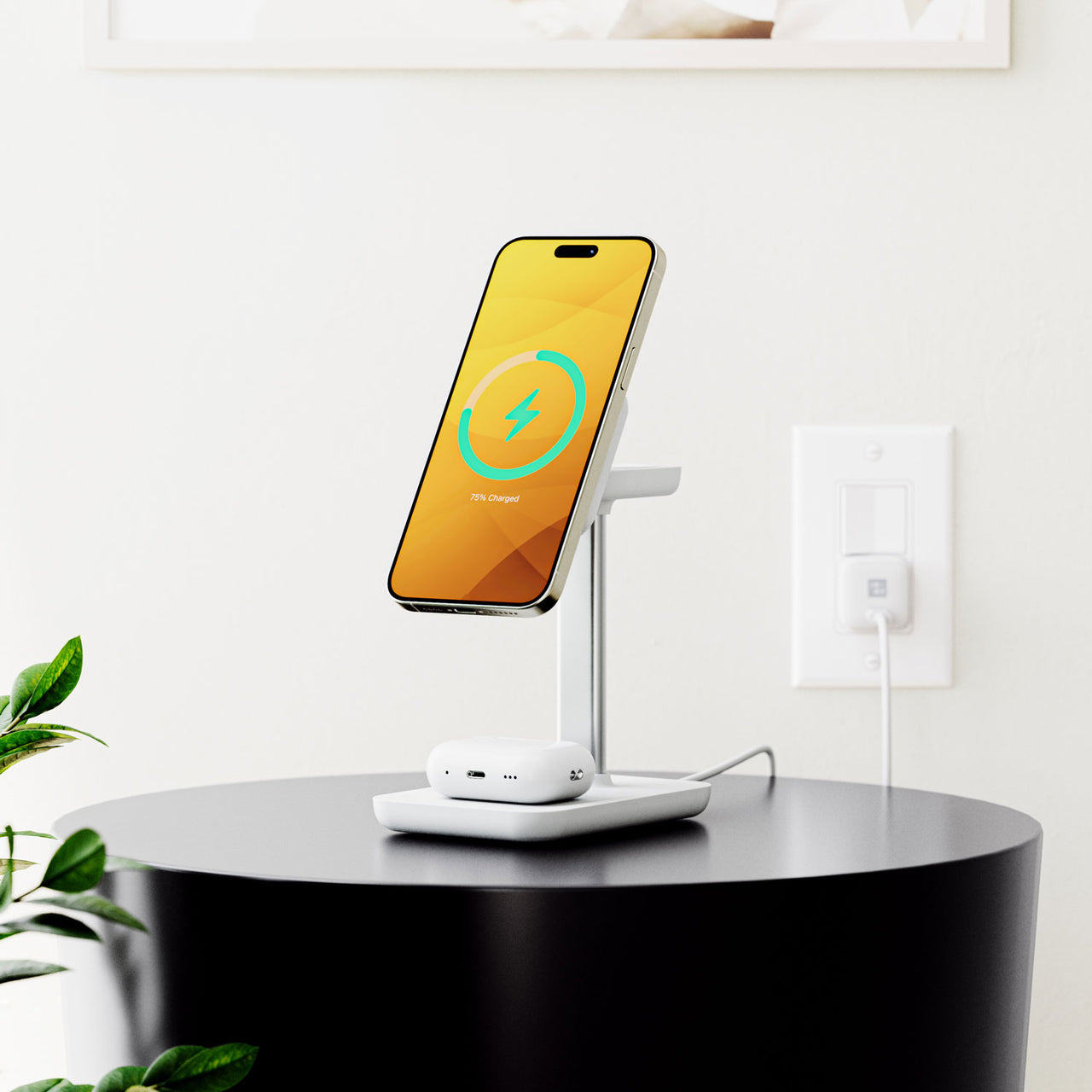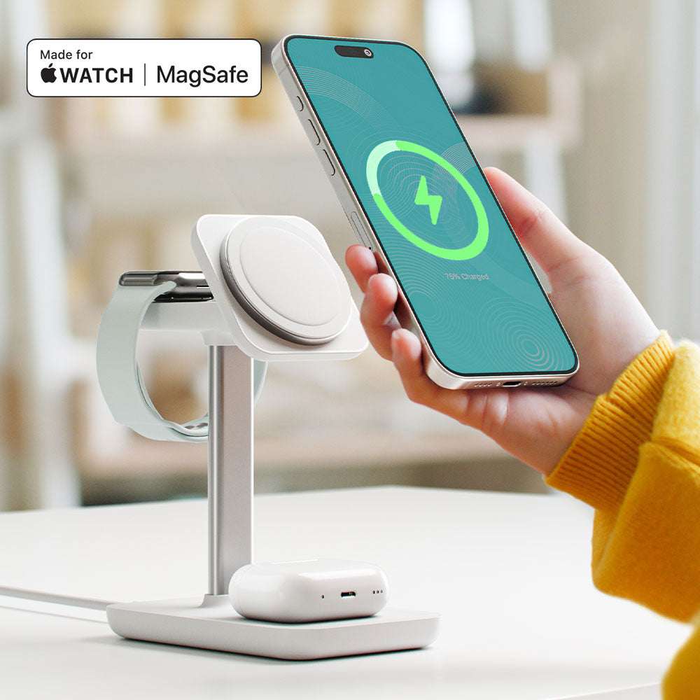 Experience seamless charging with the Trio Ultra: Fast wireless charging, MagSafe and MFi certified, and a space-saving design for your iPhone, Apple Watch, and AirPods.