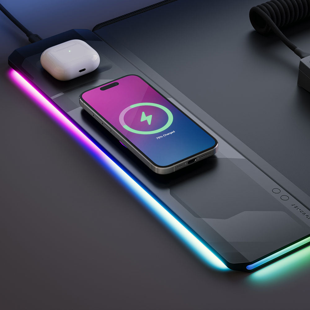 The ALTI Play Deskmat is built for everyday use and high-performance gaming. Its premium surface ensures smooth, precise control, while the removable magnetic panel attaches on either side for flexibility. Stay powered up with 15W fast wireless charging for your phone and earbuds. Whether you’re working or gaming, ALTI Play enhances your setup with functionality, comfort, and seamless charging.